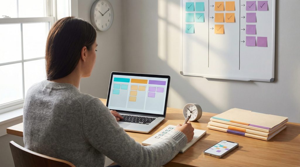 Divida o projeto em milestones curtos (2–7 dias) com entregas tangíveis. Isso cria ritmo, reduz ansiedade e permite checagens frequentes de qualidade.